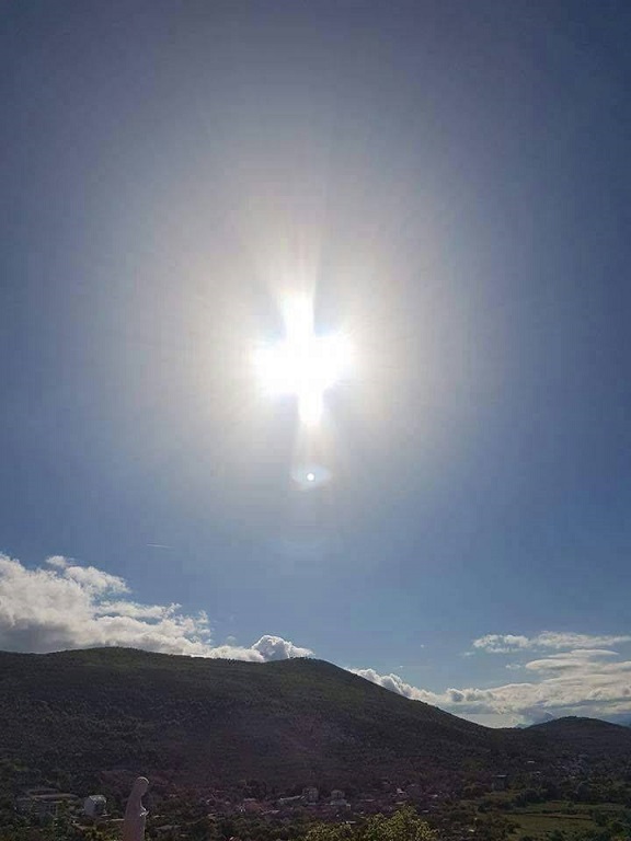 Caro Direttore, cos’altro aggiungere a questo racconto straordinario? O forse potremmo andare avanti all’infinito a parlare di frutti spirituali e materiali, segni misteriosi, guarigioni scientificamente inspiegabili. Vorrei però concludere con un’altra immagine. È una delle tante foto che ho scattato col cellulare in quei giorni. Risale al 2 agosto del 2017: la scattai dopo l’apparizione alla veggente Mirjana, a cui partecipai molto da lontano, perché c’era una folla indescrivibile (alcuni arrampicatisi sugli alberi come Zaccheo), e io non riuscii ad avvicinarmi. Quando tutto era finito e la veggente si era già allontanata, seguii gli altri pellegrini fino al luogo dell’apparizione, fotografandolo, da bravo turista religioso. Quando poi ho riguardato la foto, mi ha fatto anche questa una grande impressione. Credo sia la più bella che io abbia mai scattato.