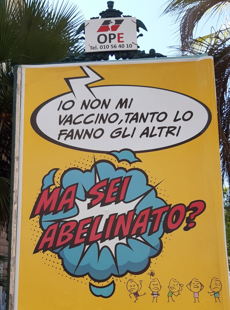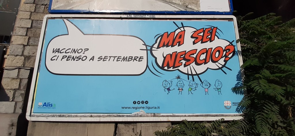 Un caso di aggressività verbale istituzionalizzata è la campagna pro vaccini lanciata dalla Regione Liguria, che ha tappezzato strade e piazze di manifesti che insultano chi non vuole vaccinarsi. Per convincere gli scettici, ha detto qualcuno. Ma per convincere gli scettici servono dei manifesti che spieghino i vantaggi dei farmaci definiti come vaccini, che rispondano alle domande, ai dubbi dei cittadini. Invece la comunicazione scelta dal governo regionale di Giovanni Toti è tesa solo a stigmatizzare la libera scelta di chi non si adegua, dandogli del pazzo (“ma sei fuori?”), dello scemo (“ma sei nescio?”) o insultandolo punto e basta (“ma sei xxx?”). Come se il ricorso al dialetto autorizzasse l’uso delle parolacce. Per indicare quella parola lì senza pronunciarla, mia nonna buonanima diceva “figlio di Abele”. Si vede che la Regione Liguria ritiene lecito scrivere le parolacce sui manifesti, perché le leggano tutti, anche i bambini. Un altro segnale del degrado in cui siamo immersi.
